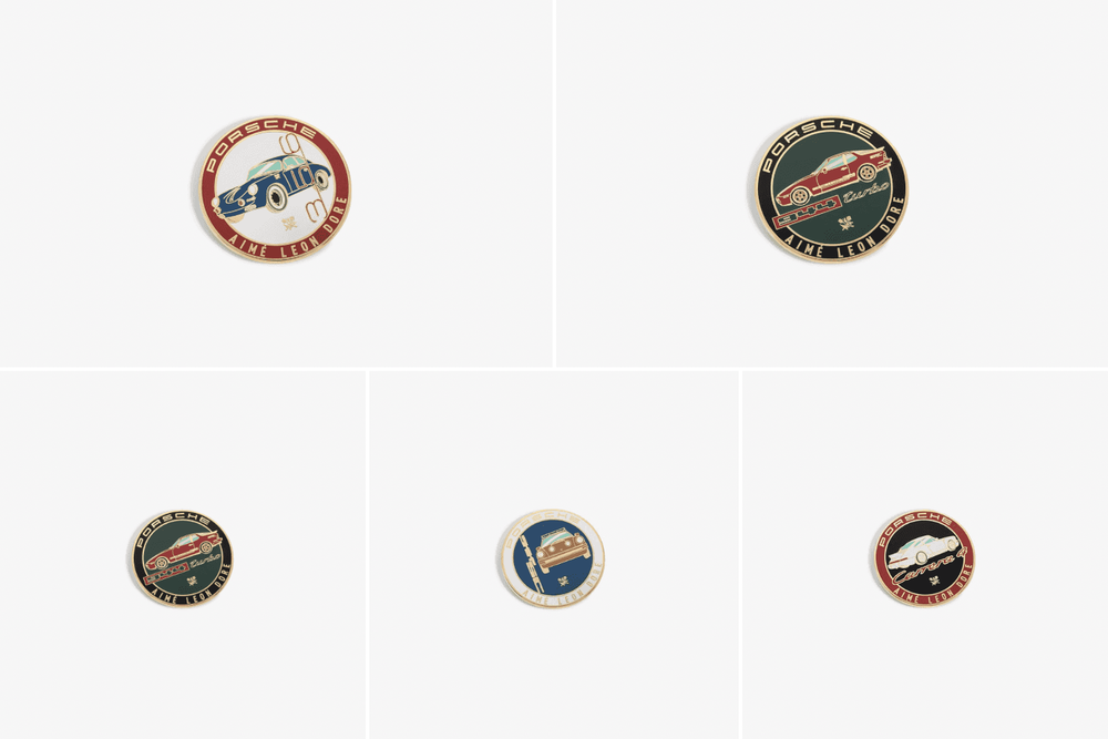 Garnishing the collection is a choice of five, custom enamel Grille Badges that respectively display artistic renditions of each of the vehicles featured in Aimé Leon Dore’s collaborations with Porsche so far.