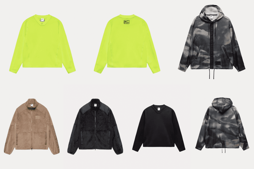 Matching the grounded, yet technical appeal of the Baltoro boot, Nike and Stüssy have lined up an expansive offering of apparel, going beyond their fan-favourite, boxy sweat combinations with two new styles of fleece, printed mesh hoodies, knitwear and side zip track pants.