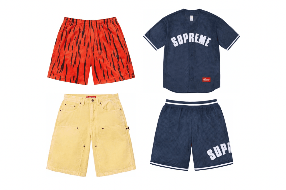 Supreme is also releasing plenty of warm-weather staples, focusing on shorts with various colourways of its Baggy Mesh style, alongside Corduroy Double Knees and Ultrasuede Mesh shorts that can be paired with a matching baseball jersey.