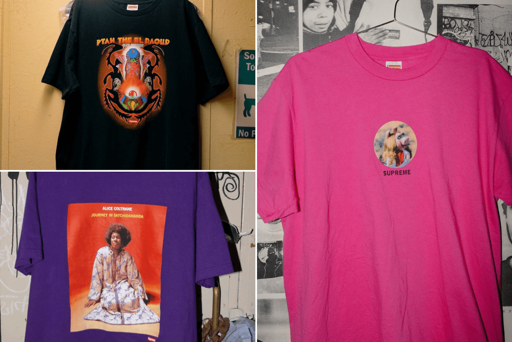 This season has seen Supreme release numerous Muppet-approved pieces and to cap off the partnership, certified Muppet Queen Miss Piggy is taking centre stage on this week’s tee collection, where she is joined by two separate designs paying respects to an originator of the Jazz scene in Alice Coltrane (one of which was subsequently cancelled due to an error on the graphic and will not release this week).